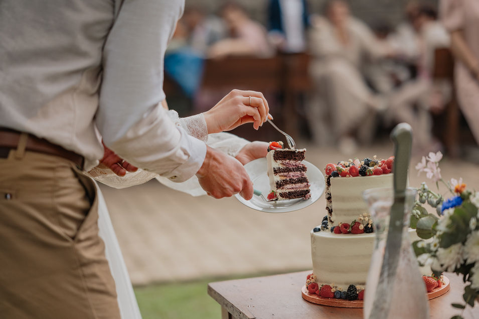 Po společném „slzivém momentu“ přišlo na řadu také krájení dortu. Venku, se zvědavým Mauim u nohou, působil celý okamžik naprosto kouzelně - přirozený, laskavý, nic na sílu. A přesně taková byla celá jejich svatba. Novomanželé se svou milou přirozeností postarali o skvělou podívanou pro všechny přítomné hosty. Maui je prostě super model, který svým čumáčkem a zvídavými pohledy zpestřil každý moment svatby.